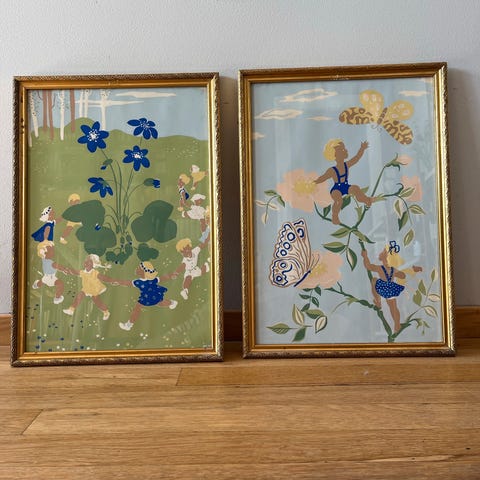 Gamle bilder med speil / speilbakgrunn med piker på. F.eks. til barnerommet / pikerommet.
