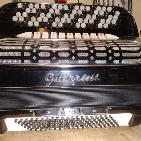 Lastebil i bevegelseFiks ferdig10 000 krGuerrini 3-korig trekkspill. Oktavtemt. 49 tonar. Norsk system.BergenLegg til som favoritt.