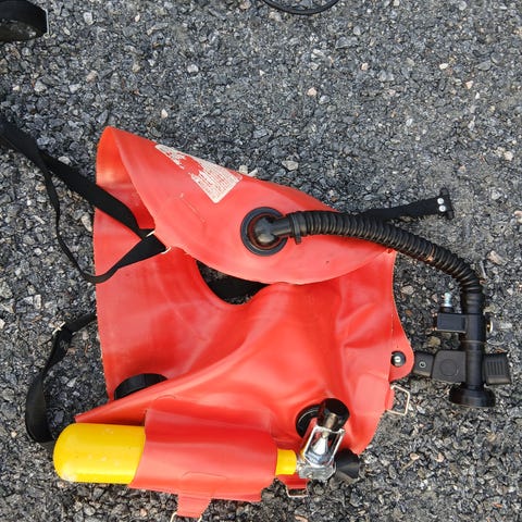 Heilt ny vest som har hengt på utstilling på en butikk selges billig. Inflatorslangen mangler, men den får en kjøpt separat på dykkebutikker eller på nett eller eg kan legge ved en brukt for kr 100,- ekstra.