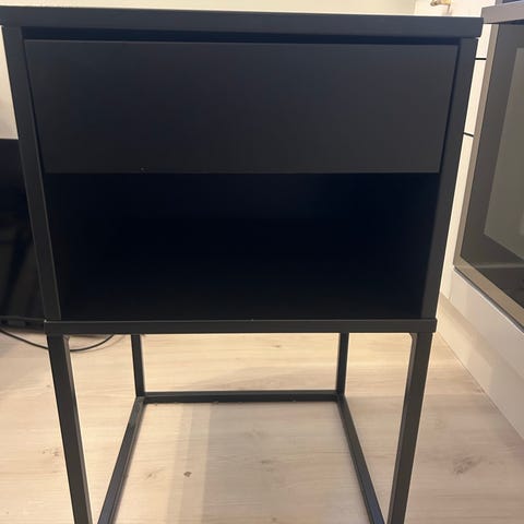 Nattbord 2 år gammel fra Skeidar. Ny pris var 1399,-. Et mini lite hakk i dør som om trent ikke synes.