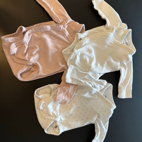 Reflex ullsett i hvit og rosa koster 350 per del egentlig. Bomullsbody