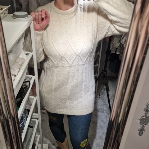 Selger nystrikkede ullgensere for min strikkeglade svigermor. Hun er en meget erfaren strikker og strikker veldig pent.