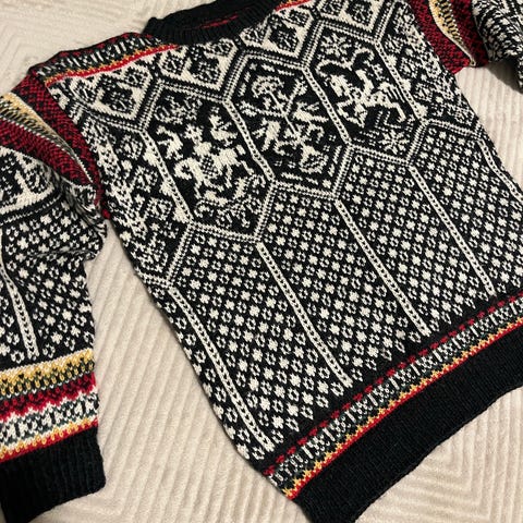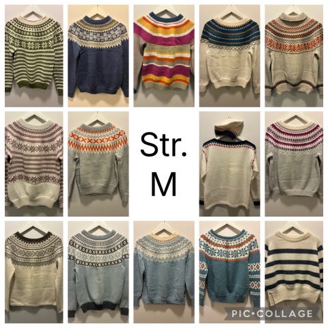 Alle genserene er ubrukte og strikket i ull. Passer str M.