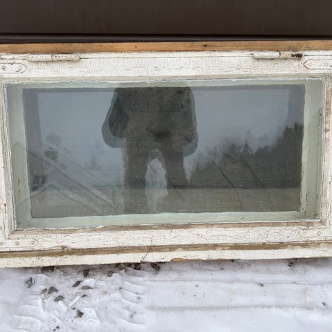 Tofags gammelt vindu med funkis stil. Antakelig fra 50-tallet? Må vaskes. Se forøvrig bilder for tilstand. Yttermål karm: Bredde ca 135cm, og høyde ca 99,5 cm. Må hentes på Toten.
