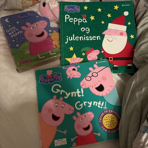 Peppa gris pute/bamse og bok.