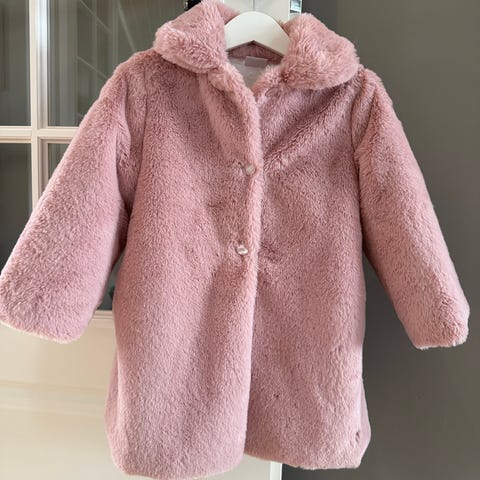 H&M Rosa barn jakke i størrelse 92, unisex. Jakken er laget i et mykt, pelslignende materiale og har to lommer foran. Passer for barn og har en varm og komfortabel design.