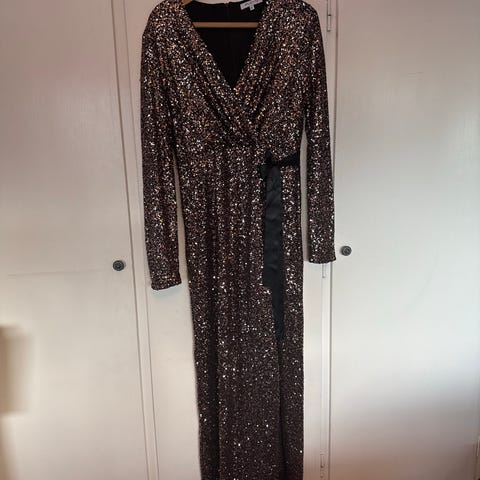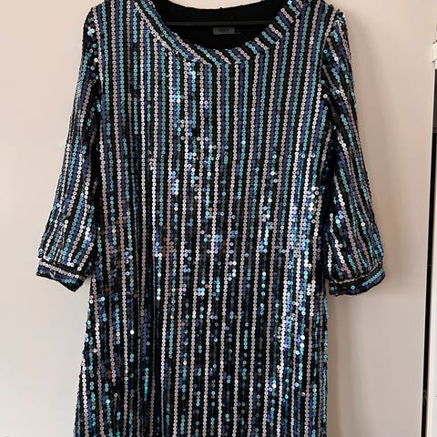 Pen, lite brukt paljett kjole selges. Kan passe str L også.