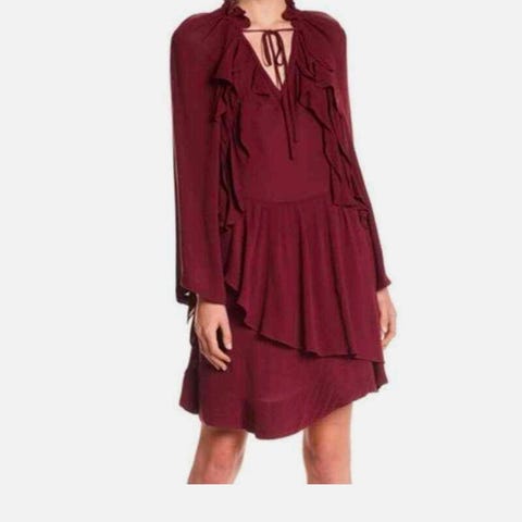Iro festkjole i sølvfarge, størrelse 42 for kvinner. Kjolen har et glitrende materiale med strukturert overflate og lange ermer. Egnet som selskapskjole..