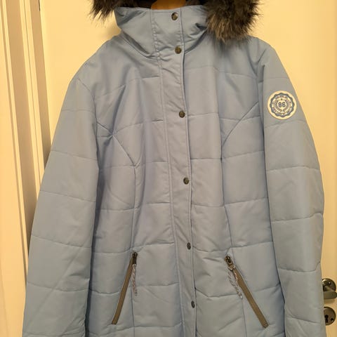 Fin blå/rosa vinterjakke, str.S, med snølås og lufting under armene. Hel og fin. Selges kr.300,-
