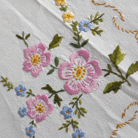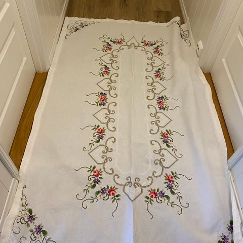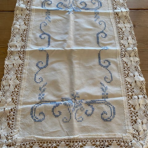 Vintage duk og løper - håndbrodert - selges