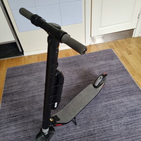 Selger en Ninebot max g30d II. Den kjører 22 km't og rekkevidde er ca 60km. Den fungerer perfekt men har noen ting som kan fikses med egen mening. Ratet er veldig slak og på grunn av det så kan man ikke folde den, men hvis man fikser det så kan man. Vi har settet på andre skruer på displayet fordi de som var der før knak (vet ikke hvorfor). TAR BUD (IKKE TULLEBUD)