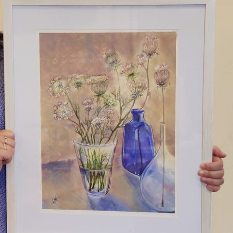 Original håndverk akvarell Fineart natur stilleben vase bilde maleri akvareller