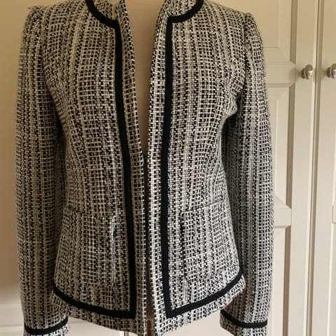 Mørkeblå blazer med hvitt mønster – XL (ubrukt)