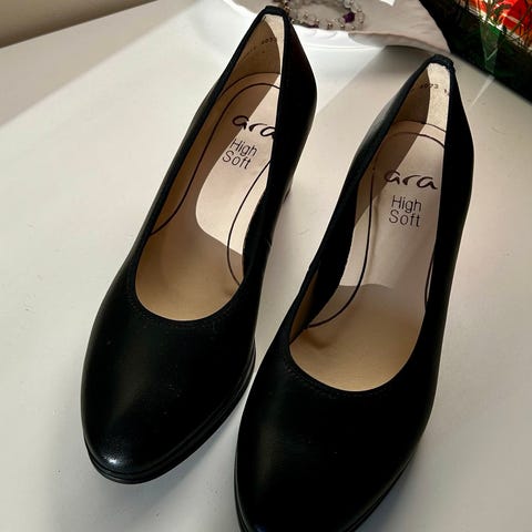 Skoene er kun brukt noen timer inne på stuegulvet. Det følger med ekstra strassperler. Kostet 1200,- nye, selges under halv pris.