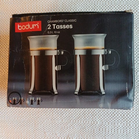 Selger to Bodum kopper til 100kr PR stk. 1 rød og 1 blå.