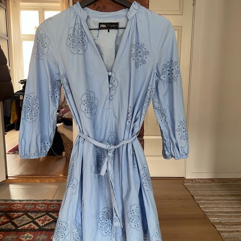 Fin kjole fra only med blått og hvitt mønster. Har belte til knyting i livet