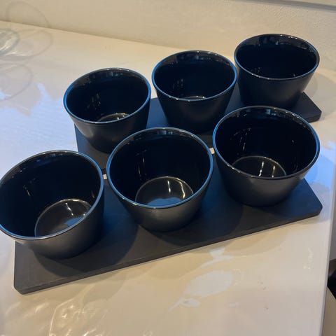 Det er 4 stk av de kurvete skålene. Er kun avbildet 3 men får med den 4 også.