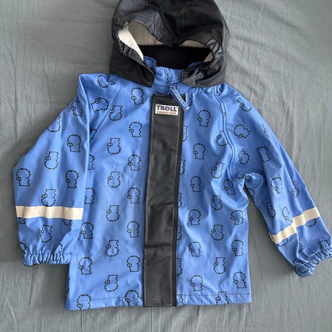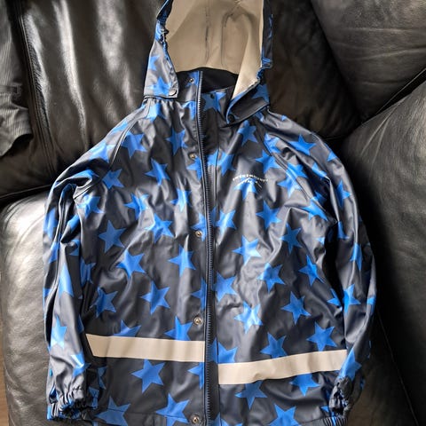 Jakken er hel og fin . Det jeg har sett er tatt bilde av . Ellers fungerer alt av glidelås og knapper . Her får du en god regnjakke til en billig pris. Jeg prøver å selge unna så fort som muligt😀