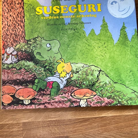 Suseguri er verdens minste arkeolog, så liten at hun nesten kan gå seg bort på toppen av en maurtue. Hun er alltid på farten for å finne økser, gull . ringer, underlige hauger og store groper som kan fortelle om hvordan folk levde før i tida. Måsagubben er med på ferden, selv om han ikke alltid forstår alt det rare Suseguri finner på. Men Måsagubben får god hjelp av den kloke Mannen i månen når det trengs som mest.