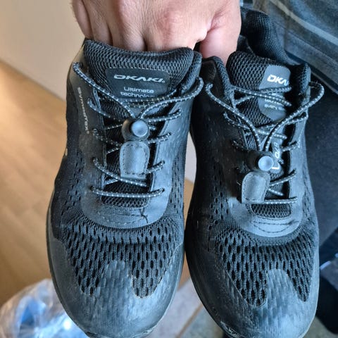 Borrelåsen har delt seg ytterst på venstre sko, kan nok fikses med superlim.