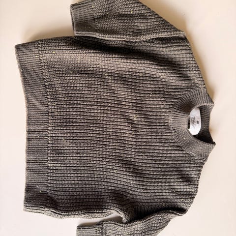 Cubus genser for gutt i størrelse 128. Fargen er grå, og genseren er laget av en blanding med 80% lambswool og 20% nylon. Materialet gir varme og komfort, egnet for kjøligere vær. Genseren har rund hals og lang erme.