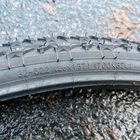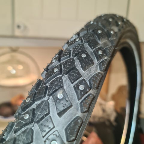 Ubrukt og uåpnet piggdekk til sykkel fra Biltema. Uåpnet da sykkelen ble ødelagt og ny sykkel hadde en annen dekkdimensjon. På dekket står det 47-622 og 28x1,75.