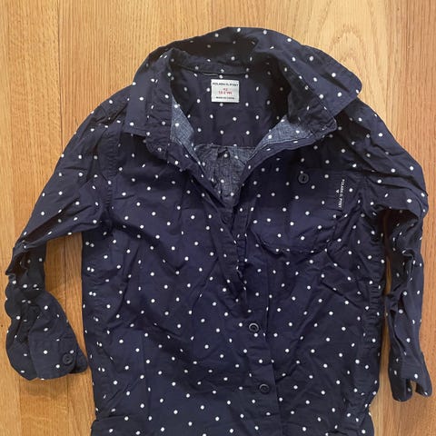 Mørk blå med røde prikker. Ikke brukt, men ingen lapp