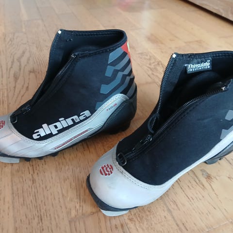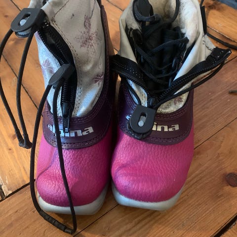 Pent brukte skisko til barn selges. Av merke Alpine Frost. Skoene har god isolering.