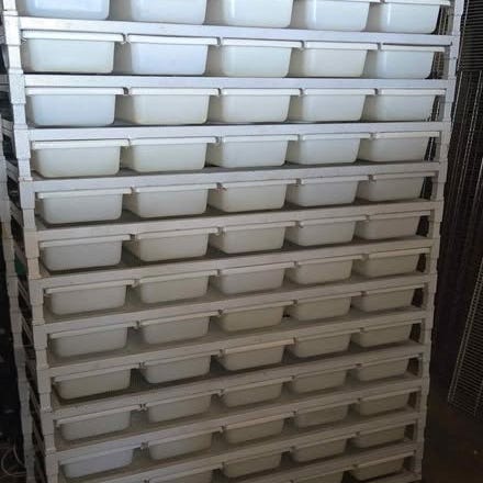 65 stk tubs med vannskål for hatchlings av kornsnok, kongepyton, kongeboa eller geckoer.