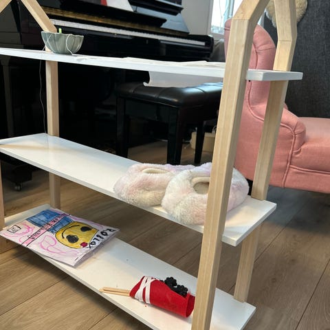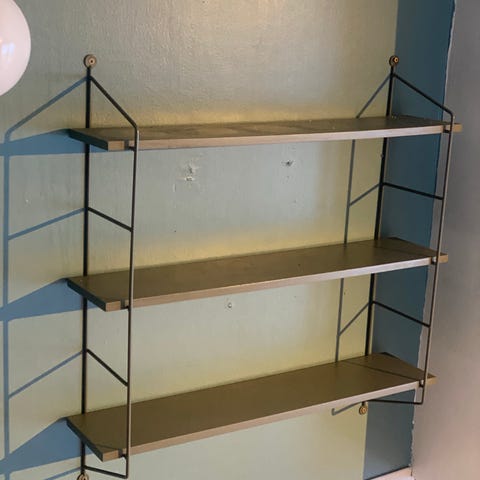 Kul hylle til bøker og pynteting.