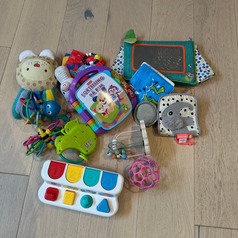 Selger forskjellige leker for di aller minste. Barnevogn leke, uro til sprinkelseng og diverse andre leker.