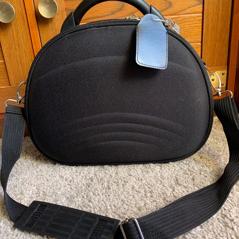 Ubrukt sminkekoffert. Vesken har glidelåsåpning og flere innvendige lommer med elastiske kanter for organisering av småting.