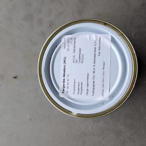 Gammel Interiørmaling. Både en prøveboks og et større spann i Matt. Kan sikkert fremdeles brukes som fargeprøve.