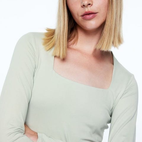V-neck ribbet langermet topp fra NA-KD – brukt noen ganger