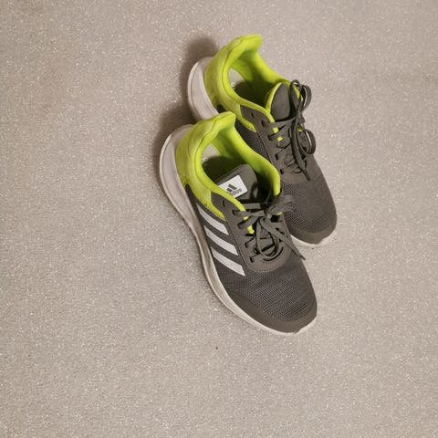 Sorte Adidas sneakers, unisex modell. Str 42. Skoene har borrelås og snøring for justerbar passform. Gode som ny.