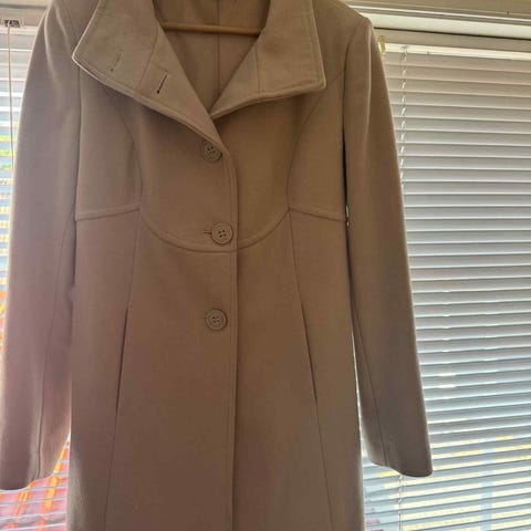 Kåpen er brukt kun 2 ganger og er i perfekt stand. Jeg selger den fordi jeg har gått opp i vekt etter at jeg fikk barn, og den passer dessverre ikke lenger. Jeg er veldig fornøyd med kåpen, så det er leit å la den bare henge i skapet – derfor håper jeg noen andre kan få glede av den. Fargen er lysere en i bilder😊 håret eller andre ting sitter ikke i materialet.