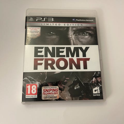 Enemy Front Playstation 3 Limited Edition er et førstepersons skytespill med fokus på historiske krigssituasjoner. Spillet inkluderer sniping-teknologi og har en aldersgrense på 18 år. Leveres med manual og spilldisk i original emballasje.