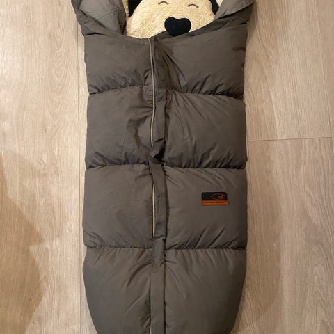 Odenwälder vognpose fra 90-tallet. 100% gåsedun. I god stand. Fargen er mørk blå. Hull til trepunkts-sele.