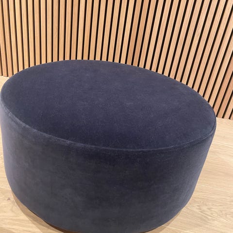Pent brukt puff selges i velur.