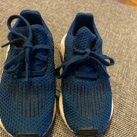 Adidas barnesko i størrelse 25, unisex modell. Skoene har en blå farge og er laget med pustende materiale. Designet for komfort og støtte til barnets føtter.