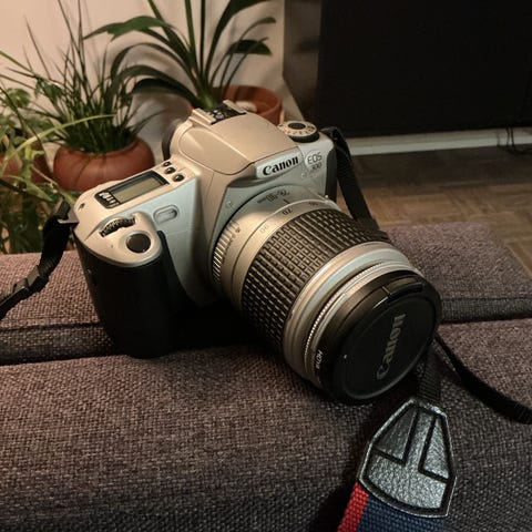 Selger et Canon EOS 500N 35mm analogt speilreflekskamera i god brukt tilstand. Perfekt for deg som vil begynne med filmfoto eller ønsker et lett og pålitelig kamera med klassisk Canon-følelse.