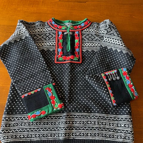 Setersdal kofte med glidelås strikket i Merinoull .Vaskes på 40 grader.