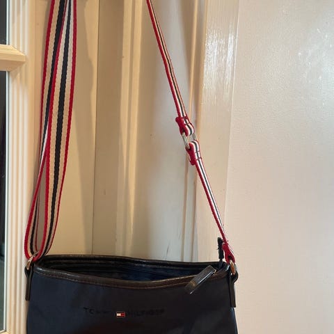 Tommy Hilfiger Stoff Skulderveske i unisex design. Vesken har en kombinasjon av fargene blå, hvit og rød. Den har en justerbar rød skulderrem og et hovedrom med isolerende fôr, som kan være egnet for oppbevaring av mat eller drikkevarer. Materialet er stoff. Aldri brukt, som ny.