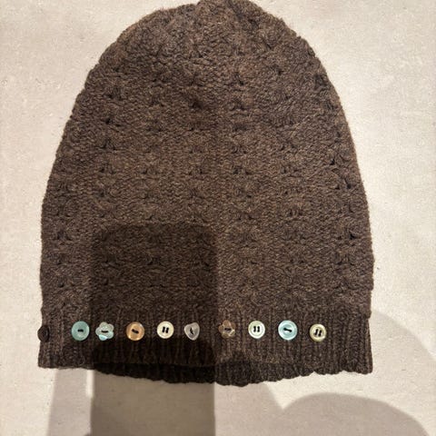 Nydelig og flott ulllue. Nesten i ny stand. Brukt kun et par ganger. Mykt materiale. Kløer ikke. Tynn ull. Litt posete om du vil ha den. Størrelse 58 hvis størrelsen jeg bruker. Den strekker seg.