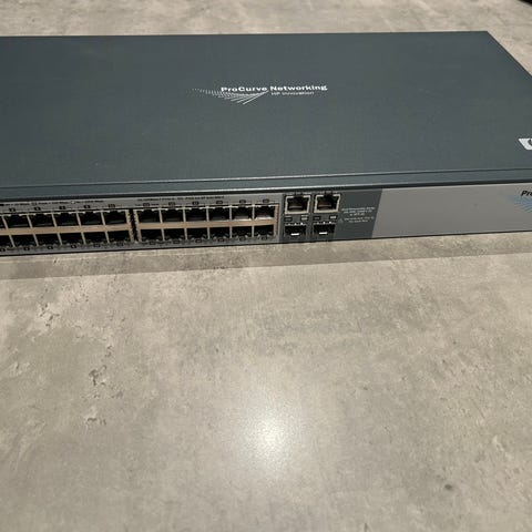 Selger en HP ProCurve 2510-48G med 48 Gigabit-porter. Perfekt for nettverksoppsett i bedrift eller hjemmelab.
