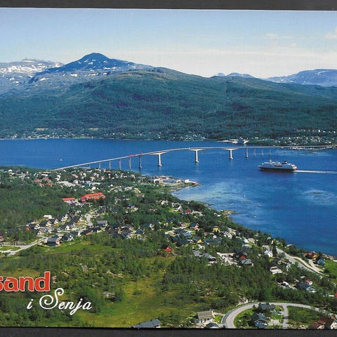 Postkort med luftfoto av Storslett, Norge. Postkortet viser oversiktsbilde av landskapet og bebyggelsen i området. Meget pent, ubrukt A6-format, se bilder