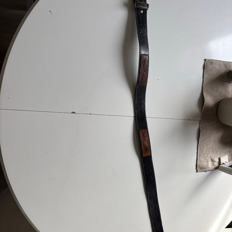 Beige belte i skinn nagler og spenne.