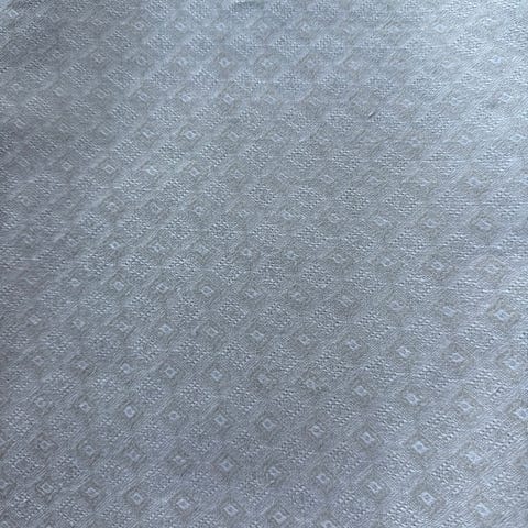 Polyester tekstiler i mellomblå farge. Tekstilen har et mønster med små geometriske former og en myk, vevd struktur. Egnet for bruk som for i jakker og kåper.