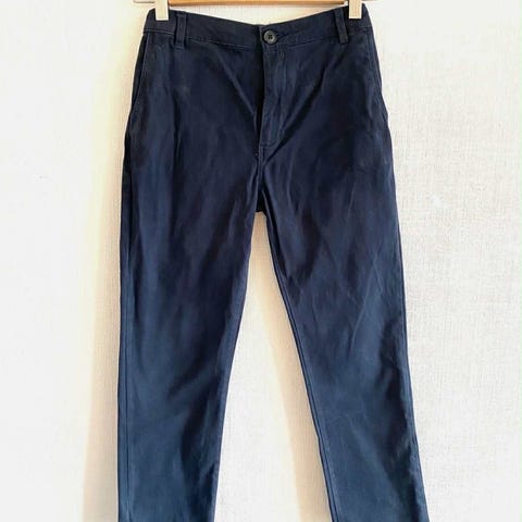 Buksen er strykefri, faller fint på og har dressbukselook.