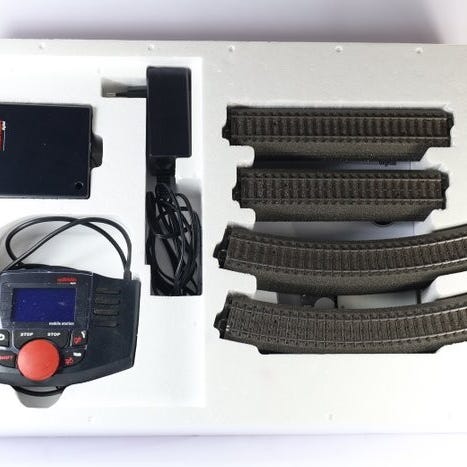 - Det mangler kontaktene/pluggene som kobler skinnene til trafo, men virker ved å holde på plass.